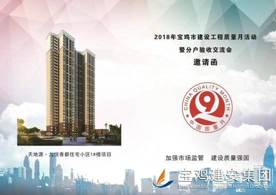 每年的九月是全國(guó)“質(zhì)量月”,今年的九月是全國(guó)第41個(gè)質(zhì)量月,為提高寶雞市住宅工程質(zhì)量標(biāo)準(zhǔn),給消費(fèi)者營(yíng)造一個(gè)放心、舒心、安心的居住環(huán)境。2018年10月10日至11日在寶雞建安集團(tuán)股份有限公司第十一項(xiàng)目部承建的“天地源?九悅香都住宅小區(qū)1#樓項(xiàng)目”成功舉行了2018年寶雞市建設(shè)工程質(zhì)量月活動(dòng)暨分戶驗(yàn)收交流會(huì)。