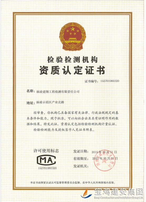 楊凌建翔工程檢測有限責(zé)任有限公司,由陜西省楊凌示范區(qū)規(guī)劃建設(shè)局批準(zhǔn),于2012年12月在陜西省楊凌示范區(qū)工商行政管理局注冊成立的股份制企業(yè),具有獨立法人資格的檢測機構(gòu)。并于2015年1月通過陜西省質(zhì)量技術(shù)監(jiān)督局的認(rèn)評取得計量認(rèn)證證書。本公司主要從事工業(yè)與民用建筑工程各項試驗檢測業(yè)務(wù)。