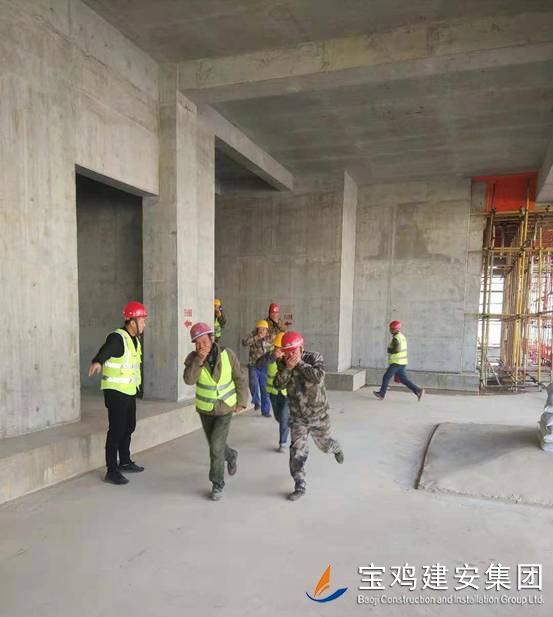 建筑施工現(xiàn)場的安全防范一直是建筑行業(yè)工作的重點(diǎn),冬季施工消防工作更是重中之重,為切實(shí)加強(qiáng)施工現(xiàn)場消防安全教育,提高施工現(xiàn)場各單位應(yīng)急救援小組應(yīng)對火災(zāi)危險(xiǎn)的應(yīng)急處置能力,積累應(yīng)急組織、人員疏散、消防救助等實(shí)戰(zhàn)經(jīng)驗(yàn),切實(shí)做好施工現(xiàn)場的安全工作。2018年11月21日下午在寶雞建安集團(tuán)公司承建的泰森?億佳苑項(xiàng)目施工現(xiàn)場舉行了一場消防應(yīng)急疏散演習(xí)。本次活動(dòng)由寶雞建安集團(tuán)股份有限公司、陜西中安工程咨詢管理有限公司、陜西泰森房地產(chǎn)開發(fā)有限公司聯(lián)合組織演習(xí)。施工現(xiàn)場100多人參加了本次演習(xí)活動(dòng),學(xué)習(xí)到處置火災(zāi)危險(xiǎn)的應(yīng)急方法,達(dá)到了演習(xí)目的。 演習(xí)活動(dòng)前,寶雞建安集團(tuán)公司安全部經(jīng)理何偉,科員符鵬、張震及寶雞建安集團(tuán)公司第六項(xiàng)目部應(yīng)急救援小組組長邵哲明、周潔組織項(xiàng)目部應(yīng)急救援小組成員針對施工人員火場逃生、救援疏散等事項(xiàng),精心設(shè)計(jì)了消防演習(xí)方案,并就施工現(xiàn)場消防設(shè)施的分布,以及火災(zāi)發(fā)生時(shí)應(yīng)該注意的事項(xiàng)進(jìn)行了說明。