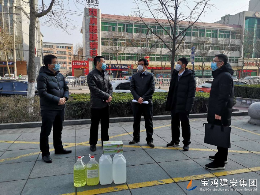 在辦公區(qū)周邊,渭濱區(qū)、橋南辦領(lǐng)導(dǎo)對(duì)我司的復(fù)工防控情況進(jìn)行了仔細(xì)詢問,并就防控具體措施、注意事項(xiàng)、安全隱患、規(guī)避方法等予以明確要求、悉心指導(dǎo),強(qiáng)調(diào)嚴(yán)格落實(shí)疫情防控工作,切勿放過任何一個(gè)細(xì)節(jié)。并為我司送來(lái)了兩桶84消毒液、兩桶75%的酒精以及兩盒一次性手套。