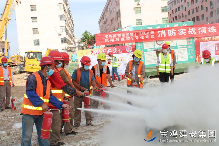 “火災(zāi)似猛虎,防患于未然”,在入夏火災(zāi)事故高發(fā)頻發(fā)期間,為了提高項目部員工的火災(zāi)防范意識,普及火災(zāi)常識,掌握火災(zāi)逃生自救知識和技能,有效預(yù)防各類火災(zāi)事故,進一步加強安全生產(chǎn)工作,認真落實“安全月”活動提出的各項工作任務(wù),202062日下午3點,寶雞建安集團第十三項目部聯(lián)合鳳翔縣醫(yī)院200多名醫(yī)護人員,在鳳翔縣消防大隊領(lǐng)導(dǎo)及公司安全部的指導(dǎo)下,成功開展了“鳳翔縣醫(yī)院3號住院樓工地消防實戰(zhàn)演練”,通過直觀、規(guī)范的火災(zāi)演練觀摩,使員工掌握了簡單的火災(zāi)預(yù)防常識和逃生自救能力。鳳翔縣建設(shè)工程質(zhì)量安全監(jiān)督站、中安監(jiān)理、鳳翔縣所有在建工程企業(yè)代表等近百余人觀摩了此次消防演練。