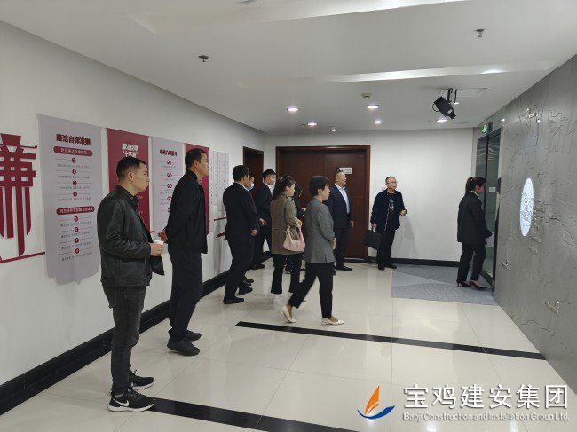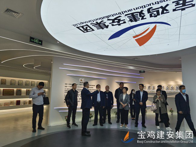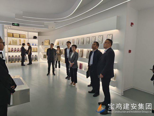 在公司總經(jīng)理胥永寧等集團(tuán)領(lǐng)導(dǎo)的陪同下,考察團(tuán)一行前往寶雞建安大廈,觀看企業(yè)宣傳片,了解集團(tuán)經(jīng)營產(chǎn)業(yè)概況。代表團(tuán)一行還參觀了公司23樓體育健身設(shè)施場(chǎng)館及職工文化娛樂配套項(xiàng)目;在建安大廈22樓企業(yè)展廳里,嘉賓們仔細(xì)觀看了陳列在此的企業(yè)榮譽(yù)成績、代表性工程及歷史實(shí)物,在胥總和展廳講解員的引導(dǎo)和解說下,代表團(tuán)一行全面了解了寶雞建安集團(tuán)六十年輝煌歷史,以及集團(tuán)在推動(dòng)寶雞城建事業(yè)中所做出的卓越貢獻(xiàn)和重要地位。